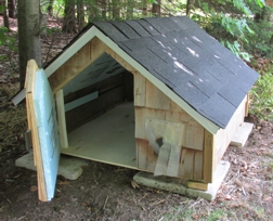 Maisonnette « Jean Chalifoux », Maisonnette deluxe adaptée aux colonies de chats, avec entrée et sortie de secours au cas où un prédateur se pointe à la maisonnette, isolée pour le froid. Toit ouvrant pour faciliter l’entretien.